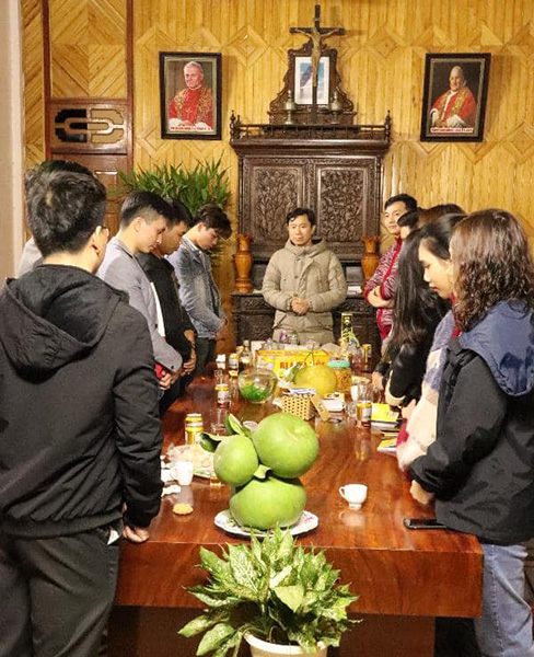 + Đại diện Xứ đoàn cùng cha Linh hướng chúc Tết cha xứ.