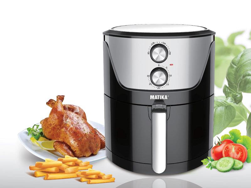 Thiết kế hiện đại, sang trọng cùng dung tích khủng 6L, nồi chiên không dầu Matika MTK-9160 sở hữu công nghệ chiên độc đáo giúp chế biến đa dạng các món chiên – quay- nướng cực kỳ dễ dàng và tiết kiệm thời gian.