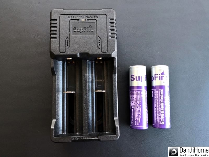 Đi kèm sạc pin và 02 pin 18650 zin của hãng.