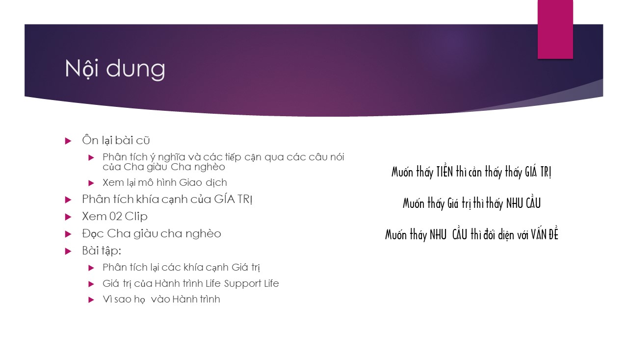 - Hiểu được Dòng Tiền - Dòng Giá trị - Dòng Tâm thức