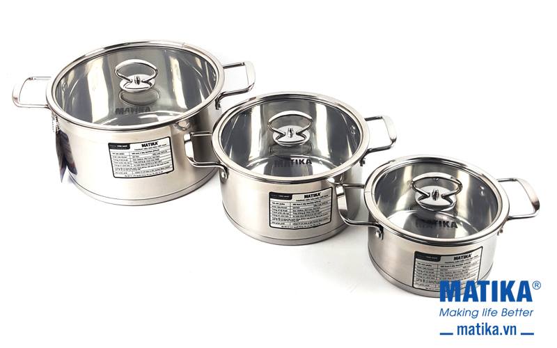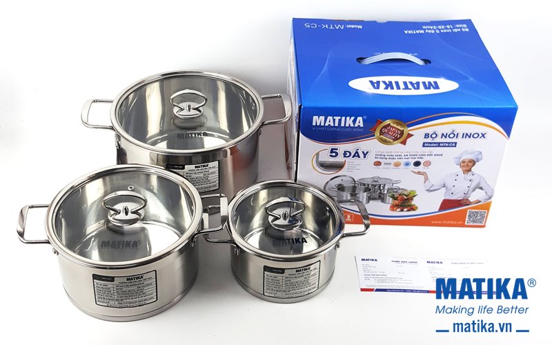 Nồi inox 5 đáy Matika MTK-C5 bộ 3 nồi cao cấp, thiết kế hiện đại đáy từ