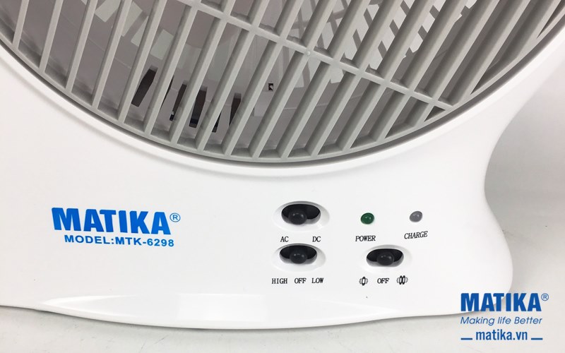 Quạt sạc điện Matika MTK-6298 đèn LED hiện đại, pin khỏe