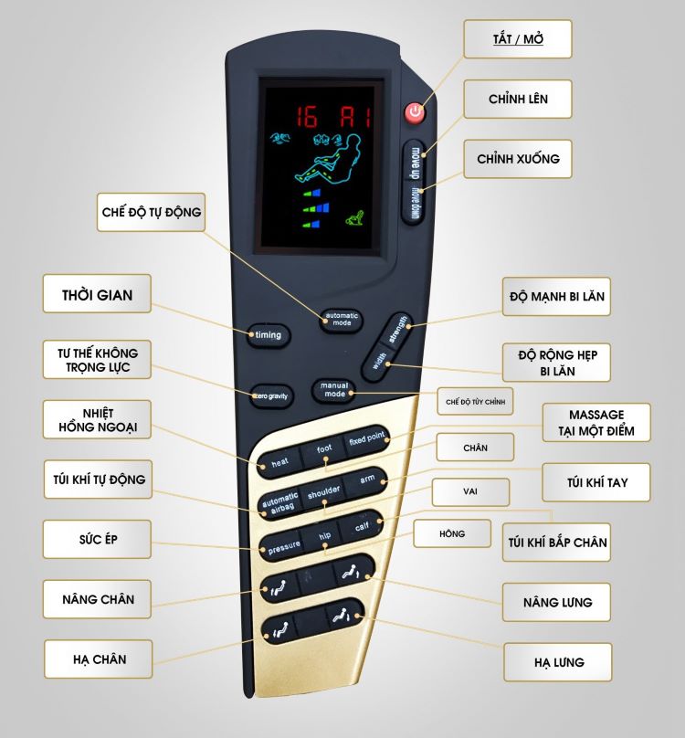 <div>Tính năng này được tạo thành từ việc kết hợp cùng lúc nhiều kỹ thuật massage theo một chương trình được lập trình sẵn dựa trên nguyên lý mát xa cổ truyền phương Đông. Khi lựa chọn tính năng này, lưng ghế sẽ trượt nhẹ về phía trước và ngả ra sau. Đồng thời, chân ghế nâng lên. Chuyển từ tư thế ngồi sang tư thế nằm. Các con lăn và túi khí lúc này cũng đồng thời hoạt động, ôm sát từng vị trí, nâng đỡ toàn bộ cơ thể. Massage chuyên sâu, cho bạn cảm giác như đang ở ngoài vũ trụ.</div>