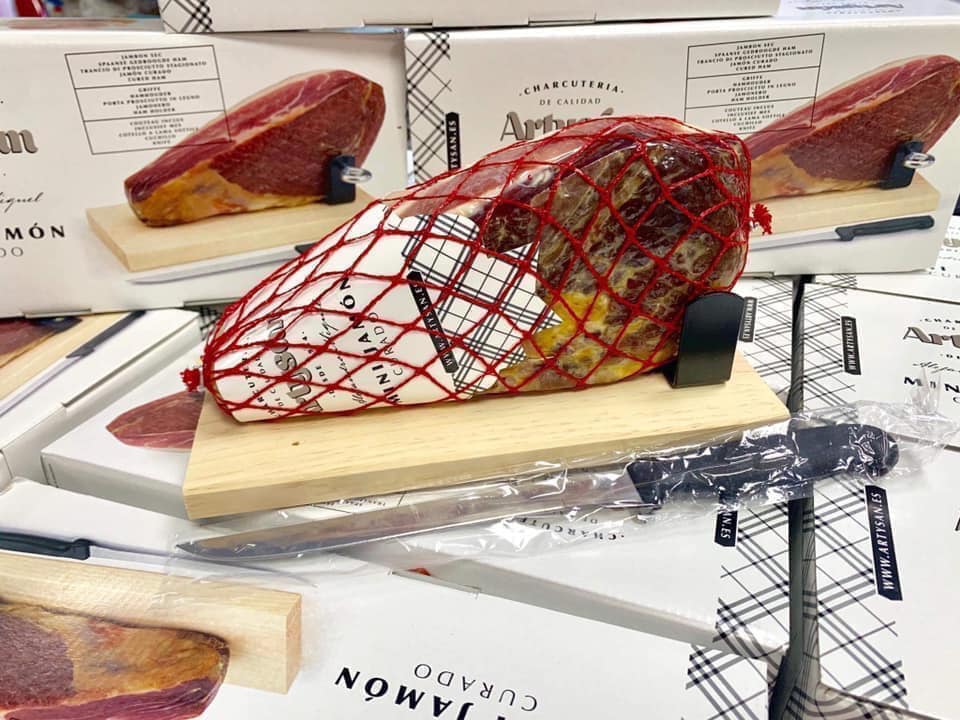 <div>🍗Đùi lợn muối đặc sản của Tây Ban Nha,còn gọi là Jamón, đây là món ăn truyền thống rất được người Tây Ban Nha ưa chuộng. Jamón là loại đắt tiền vì được làm từ giống lợn đen quý hiếm, nhà e lại về thương hiệu uy tín và ngon nhất.</div>
