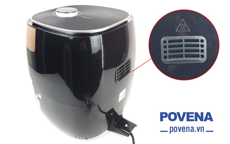Bên cạnh công nghệ chiên Rapid Air tiên tiến, nồi chiên chân không Povena PVN-4511 có khe thoát hơn đằng sau thân nồi giúp món ăn giòn không bị ám khí.