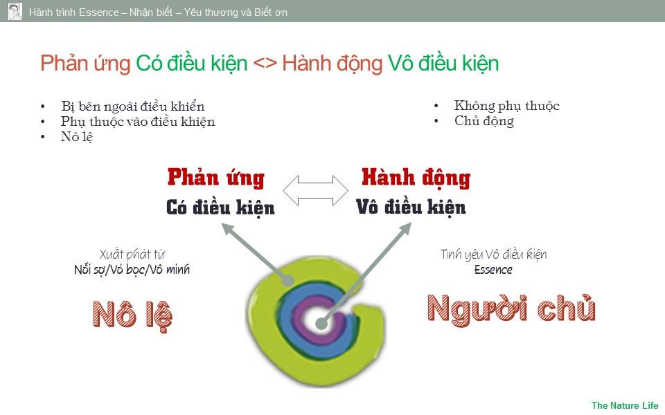 - Khi chúng ta phản ứng có điều kiện => Chúng ta hành động vô thức và bị bên ngoài điều khiển. Chúng ta là NÔ LỆ.