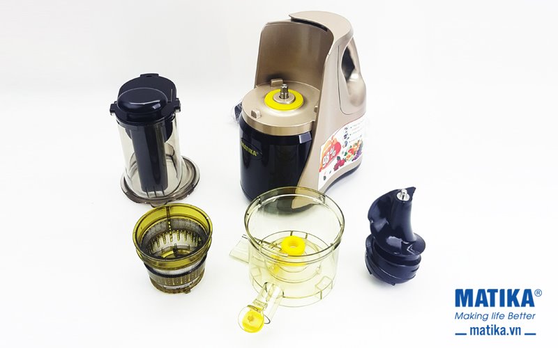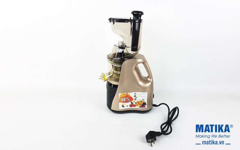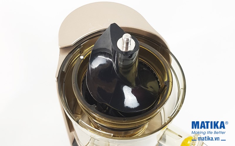 <div style="text-align: center;">Máy ép chậm Matika ép hoa quả bằng trục thẳng đứng giúp ép được kỹ hơn, giữ tối đa dưỡng chất và vitamin trong nước ép</div>