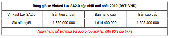 <p><b>Tổng quan VinFast Lux SA2.0 2019</b><br>