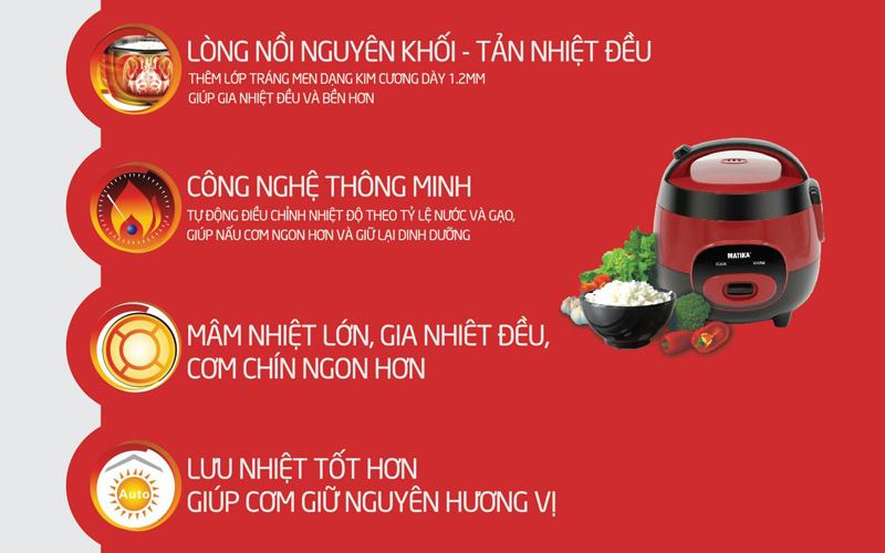 <div style="text-align: center;">MTK-RC08 sở hữu công nghệ nhiệt thông minh giúp cơm chín nhanh và đều</div>