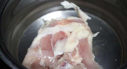 <div style="text-align: justify;">Rửa sạch phần lường gà với ước muối pha loãng, sau đó đổ nước lạnh ngập mặt thịt gà. Bật bếp đun lửa nhỏ, thỉnh thoảng hớt bọt để nước dùng trong.</div>