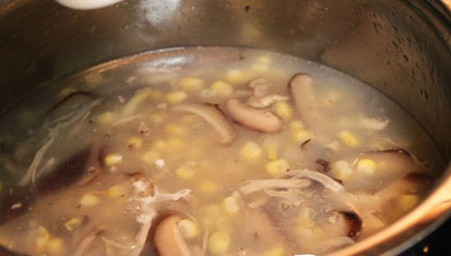 <div style="text-align: center;">Tiếp theo đổ gà và nấm đã xào qua và nồi ngô, nêm nếm gia vị vừa ăn, muối, hạt nêm.</div>