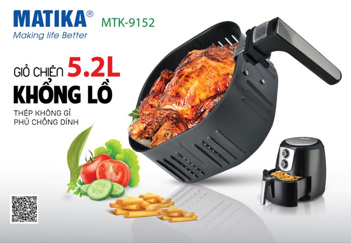 <div style="text-align: center;">Nồi chiên chân không Air Fryer MTK-9152 siêu tiện lợi cho gia đình có đông thành viên.</div>