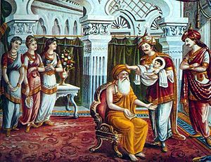 <div style="text-align: center;"><i>Nhà tiên tri Asita (A-tư-đà) dự đoán sau này đứa trẻ Siddhartha sau này sẽ trở thành đấng giác ngộ và truyền dạy chánh pháp cho thế gian</i></div>