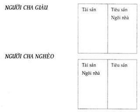 <p>Những biểu đồ sau minh họa sự khác biệt về nhận thức giữa người cha giàu và người cha nghèo trong vấn đề nhà cửa. Một người nghĩ rằng ngôi nhà là một tài sản, còn người kia nghĩ rằng nó là một tiêu sản.</p>