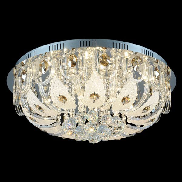 Đèn mâm trang trí bằng pha lê thiết kế với kích thước khá to 600mm, 750mm, sẽ lắp đặt phù hợp với không gian phòng khách, sảnh khách sạn, nhà hàng lớn,...