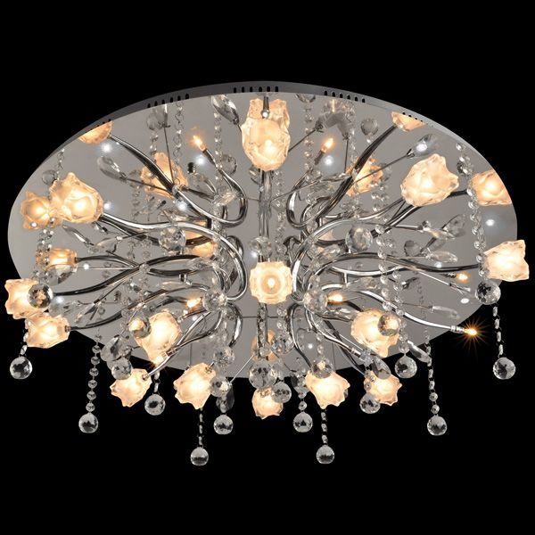 Đèn mâm trang trí bằng pha lê thiết kế với kích thước khá to 600mm, 750mm, sẽ lắp đặt phù hợp với không gian phòng khách, sảnh khách sạn, nhà hàng lớn,...
