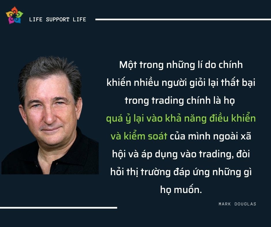 Một trong những lí do chính khiến nhiều người giỏi lại thất bại trong trading chính là họ quá ỷ lại vào khả năng điều khiển và kiểm soát của mình ngoài xã hội và áp dụng vào trading, đòi hỏi thị trường đáp ứng những gì họ muốn. Ở một mức độ nào đó, ta đã học được cách điều chỉnh môi trường bên ngoài cho phù hợp với những gì bên trong ta muốn. Nhưng quan trọng ở chỗ, ta chẳng thể áp dụng được phương pháp nào trong số đó lên thị trường. Thị trường sẽ không phản hồi lại những mệnh lệnh của bạn (trừ khi bạn là một trader cực kì quyền lực). Tuy nhiên chúng ta có thể kiểm soát được nhận thức cũng như giải thích được những thông tin mà thị trường cung cấp. Thay vì kiểm soát môi trường xung quanh cho phù hợp với những gì ta muốn thì ta học cách kiểm soát bản thân. Từ đó ta có thể nhìn nhận thông tin từ góc nhìn khách quan nhất có thể, và điều khiển tâm trí ta hành động theo hướng có lợi nhất cho bản thân.