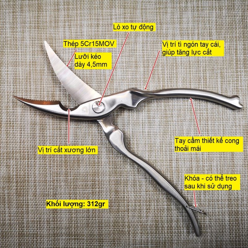 Giới thiệu sản phẩm kéo cắt gà với thiết kế thép liền khối tương tự với thương hiệu kéo nổi tiếng của Đức: Zwilling