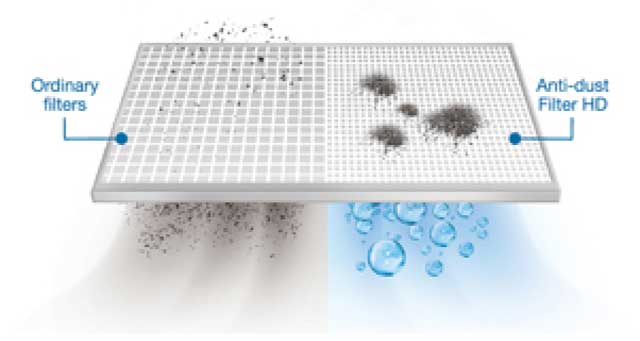 Bộ lọc HD chống bụi sẽ ngăn chặn bụi bẩn xâm nhập vào bên trong hệ thống của điều hòa. Bộ lọc này sẽ đảm bảo một bầu không khí trong lành và ngăn chặn các vi khuẩn có thể sinh sôi trong điều hòa Matika bảo vệ sức khỏe cho con người.