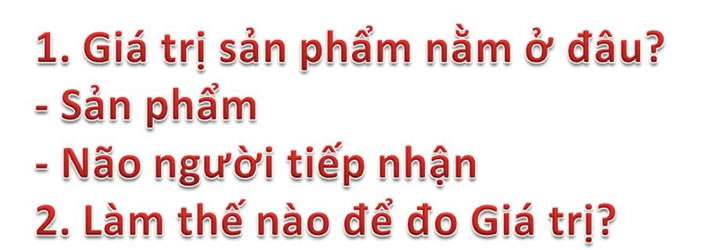<p>Thực tế cho thấy Giá trị của sản phẩm chính là Sự tương tác giữa Người tiếp nhận và Sản phẩm. Giá trị của sản phẩm cần cả 2 yếu tố Sản phẩm và Não bộ.</p>