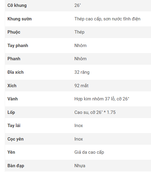 <p align="center"><b>Chi tiết thông số kỹ thuật</b></p>