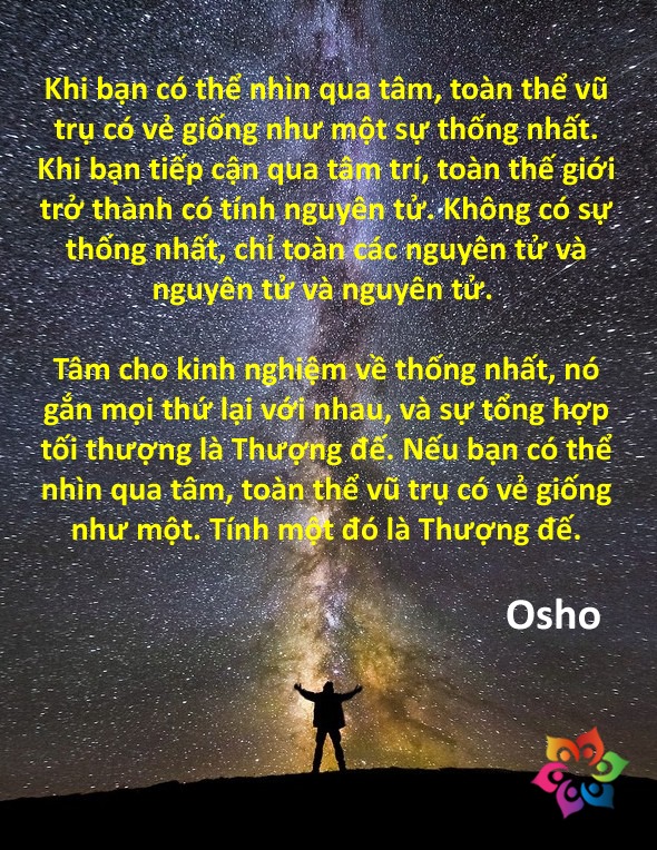 <div dir="auto">Tâm trí không bao giờ có thể nhìn được theo cách đó - điều đó là không thể được cho tâm trí. Tâm trí chỉ có thể phân tích! Cái đầu tổng hợp; tâm trí chỉ có thể mổ xẻ, phân chia - nó là kẻ phân chia. Chỉ tâm mới cho sự thống nhất.</div>