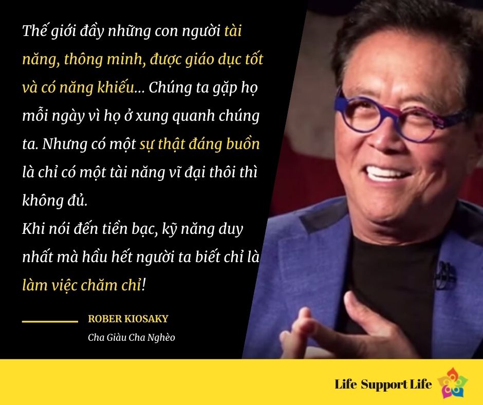 Tôi thường rất sửng sốt trước số tiền lương ít ỏi mà rất nhiều người đầy tài năng kiếm được. Tôi nghe nói rằng chỉ có không đầy 5% người Mỹ kiếm được hơn 100. 000 $ một năm. Tôi đã gặp những con người xuất chúng, học cao nhưng chi kiếm được chưa tới 20.000$ một năm. Một cố vấn kinh doanh chuyên ngành y khoa mậu dịch bảo tôi rằng: có rất nhiều bác sĩ, nha sĩ và y sĩ rất vất vả về tài chính. Trước lúc đó, tôi cứ nghĩ trong khi họ tốt nghiệp, hẳn là tiền bạc bắt đầu đổ vào. Người cố vấn kinh doanh này đã nói rằng: “Chỉ một tài năng thôi không đi cùng một tài sản lớn.”