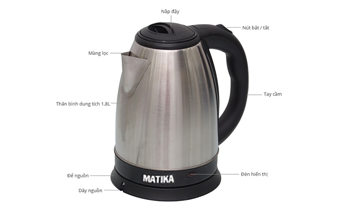 <div style="text-align: center;">Thiết kế chi tiết của ấm siêu tốc Matika MTK-1811</div>